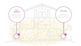 L’Aura, développé par Cognitive Systems, détecte ces perturbations à partir d’une station de base (le Hub), ainsi que d’un capteur satellite, et envoie une alerte au smartphone du propriétaire. Selon l’entreprise, son système, qui surveille chaque signal sans fil de 700 MHz à 4 GHz, est suffisamment sensible pour détecter une respiration et peut même faire la différence entre une personne et un objet mécanique en mouvement, tel qu’un ventilateur qui tourne.